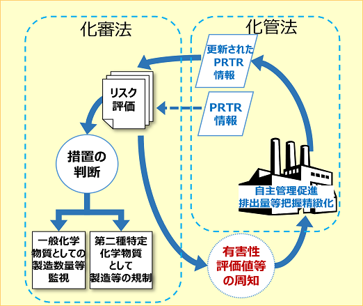 図1:化審法のリスク評価と化管法のPRTR情報の関係について