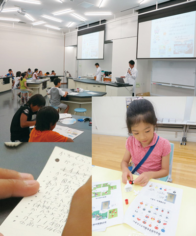 8月7日~10月4日には、渋谷区の教育委員会と連携し、渋谷区文化総合センター大和田の子供科学センターハチラボにおいて、「身の回りの製品を科学しよう!」をメインテーマとして、NITEの業務紹介、リスク評価の解説、製品に含まれる化学物質等の冊子や、身の回りの化学物質でできた製品(PETボトル、洗剤)の解説、周期表及び分子模型等の展示のほか、子供が自ら手を動かして体験できるものとして、分子模型作りコーナーを設置し、のべ1万人程度の方にご来場いただきました。