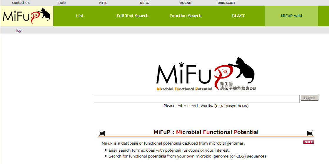 MiFuP (Microbial Functional Potential) is a database of functional potentials deduced from microbial genomes.