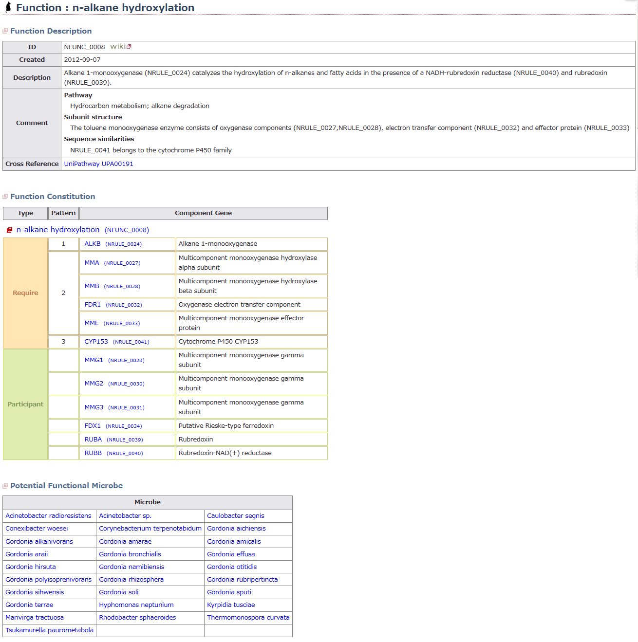 Each function is defined by annotators specialized in microbial field based on published reference. Key enzymes necessary for exertion of function, and threshold acquiring its orthologs are also defined.