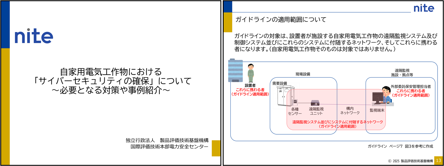 独立行政法人 製品評価技術基盤機構 【NITE(ナイト)、理事長:長谷川 史彦、本所:東京都渋谷区西原】は、2024年度NITE講座の1つとして、主に電気工作物の設置者に向けた、サイバーセキュリティの確保のための解説動画をNITEの公式YouTubeチャンネルにて3月19日に公開しました。