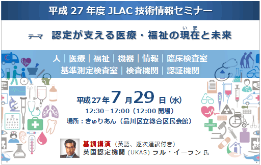 平成27年度JLAC技術情報セミナー(JAC JLAC主催)を7月29日(水) きゅりあん(品川区立総合区民会館)にて開催いたします。