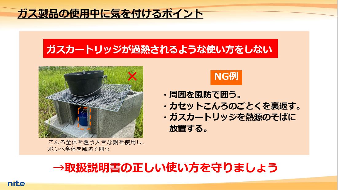 ■NITEでは2023年7月27日にアウトドア調理時の火の扱いに関する注意喚起