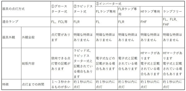【参考】蛍光灯器具の点灯方式と特徴