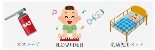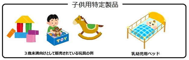 「子供用特定製品」として、「乳幼児用玩具」(主として家庭において出生後三十六月未満の乳幼児の遊戯に使用することを目的として設計したものに限る。)と、既に「特別特定製品」に指定されている「乳幼児用ベッド」の2製品が指定されます。少し先ですが、2025年12月25日から施行されます。