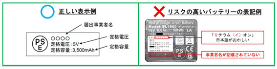○「PSE等のPSマーク」の近くに事業者名があるか確認する。