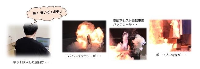 →非純正品として販売されたものによる事故です。バッテリーがリチウムイオン電池のセル間の電圧のアンバランスを検知する回路がない構造であったため、過充電により異常発熱し、焼損したものと推定されます。