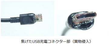 充電器「4.USB充電端子に異物が入って異常発熱」