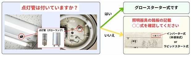 ・蛍光灯器具側の点灯方式の確認方法