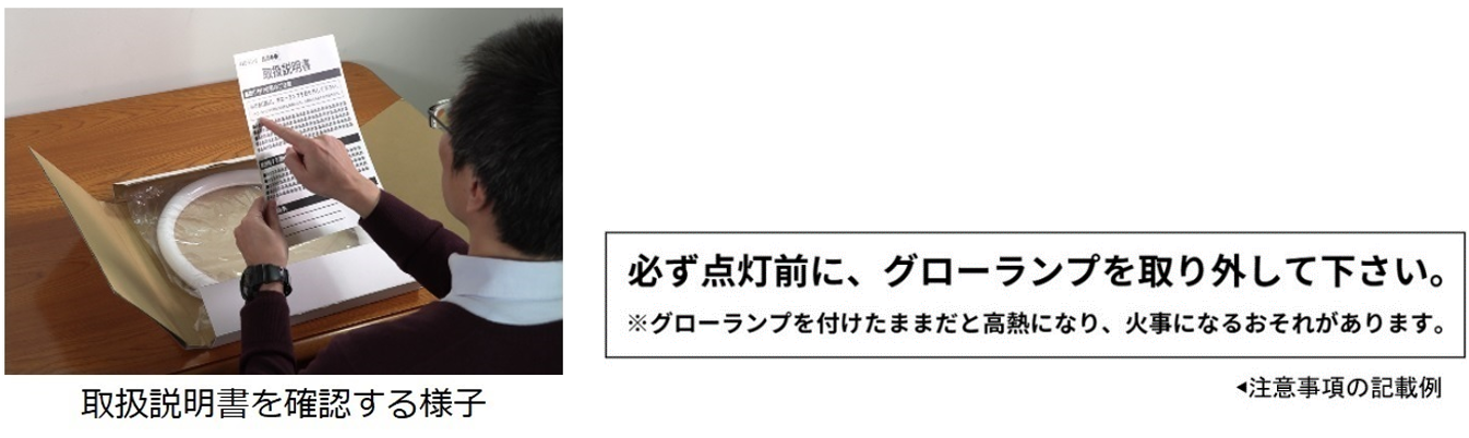 ②LEDランプのパッケージや取扱説明書に記載されている注意事項を守って作業する。
