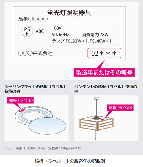 照明器具は、長期間使用すると器具内の部品が経年劣化し、破損・発煙・発火するおそれがあります。一般社団法人日本照明工業会は照明器具を設置してから10年を「適正交換時期」、15年を「耐用の限度」としています。使用年数が目安となる10年を超えている場合は、新しいLED照明へ器具ごと交換することも検討してください。また10年未満であっても異常がある場合は直ちに使用を中止し、交換してください。
