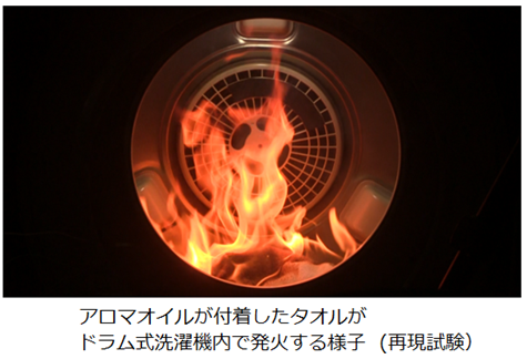 例えば、エステ店等でオイルマッサージを行い、アロマオイルやマッサージオイルが浸み込んだタオルを洗濯後に乾燥機で加熱したり、そのまま重ねて置いたりした場合、内部に熱がこもり、自然発火に至ることがあります。