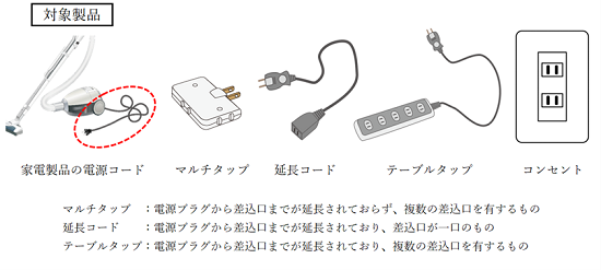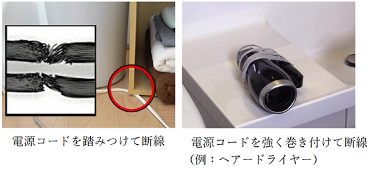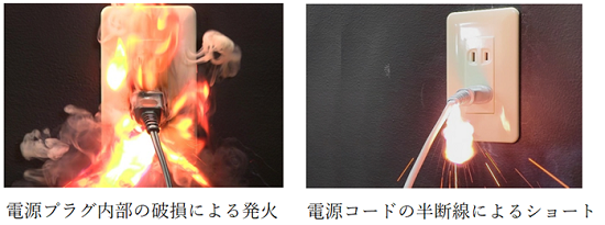 ※1 NITEでの事故調査の結果、製品本体側の電源コード根元からコンセントまでの箇所(延長コード、テーブルタップ、マルチタップを含みます)が原因で発生した事故です。ここには製品本体側に起因する事故は除きます。