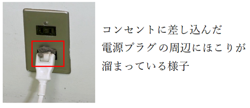 (2)『電源プラグ』にほこりが溜まっていないか確認しましょう。