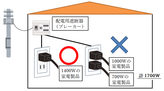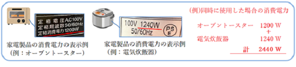 (5)『コンセントやタップ』に接続可能な最大消費電力を超えていないか確認しましょう。