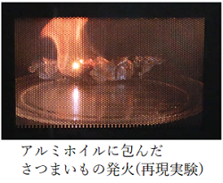 電子レンジ「13.アルミ箔で包んだ芋の発火」