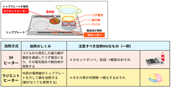(2) IHこんろ(IHヒーターとラジエントヒーターの違い)