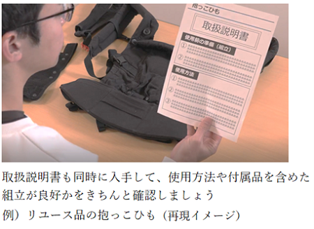 リユース品の場合、新品購入時の所有者ではないため、メーカーからのダイレクトメールが受け取れないなど、リコール情報が届きにくくなるおそれがあります。提供側も入手側もリコール製品でないことを確認しましょう。