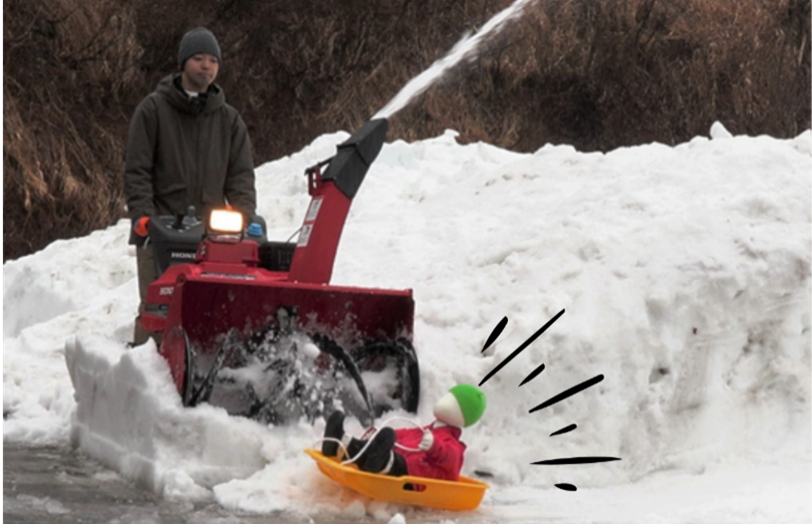 進行方向の死角からこどもがソリで滑ってくる様子(イメージ)