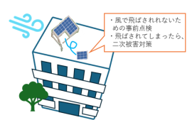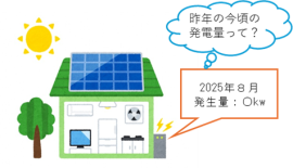 具体的には、9月は台風シーズン真っ盛りであり、暴風で太陽電池モジュールが飛ばされたり、台風後に不具合を放置したりすることで、火災事故が発生しています。台風が来る前や台風がとおり過ぎた後に、太陽電池発電設備に不具合がないか確認することで事故の発生を未然に防ぐことにつながります。また、発電モニターの前年同月の発電量と比較することで事故発生の前触れを察知できる場合など、日々の確認で事故発生を防ぐことができる対策もあります。