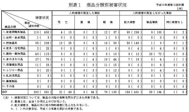 1.製品に起因する事故による被害状況