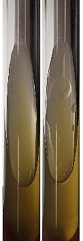 ![]() MLNA斜面培地 左:オリーブオイル添加前、 右:添加後 |