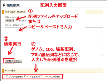 します。入力した配列種別{ゲノム塩基配列、CDS(タンパク質に翻訳さ