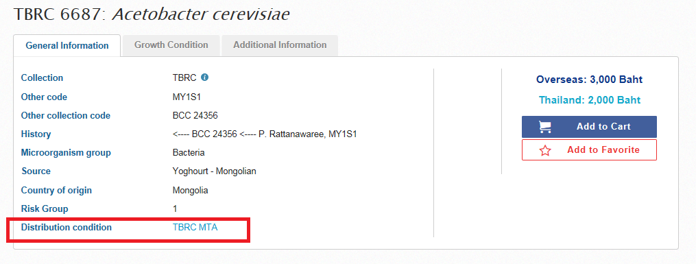 TBRCはタイ国内外の多種多様な微生物を取り扱っています。入手にあたっては、TBRCの分譲ポリシー及びMTA(Material Transfer Agreement)で定める利用条件またはその他の契約の条件に同意する義務があります。