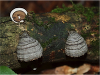 (上 ツリガネタケ、下 ヒラタケ)
