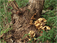腐朽性のきのこの中にも、ナラタケ属(Armillaria)やマツノネクチタケ属(Heterobasidion)など、生きた樹木に感染して病気を起こす種類が多くあります。