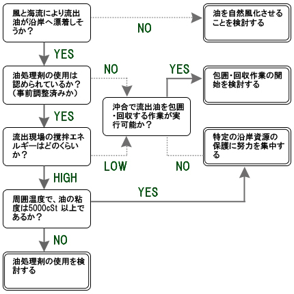【図2】流出対応方法決定(油処理剤使用)指針のフロー(ITOPF)