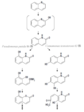 Comamonas testosteroni 63 株によるキノリンの分解経路
