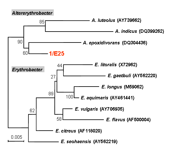 Altererythrobacter属とErythrobacter属基準株の分子系統樹