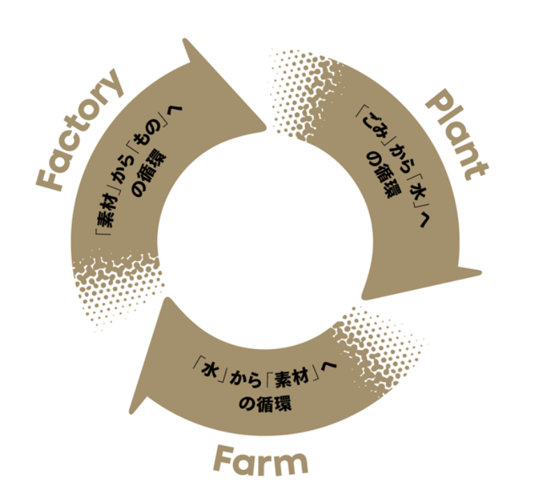 - 「ごみ」から「水」、「水」から「素材」、「素材」から「もの」の循環を