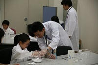 身近な材料から入浴剤を作って、化学反応で泡が出ることを体験します。