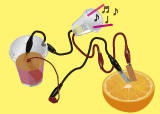 くだものや野菜、飲み物をつかって、手作りの電池を作ろう!君のつくる電池で電子オルゴールの音はきこえるかな?