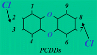 中でもPCDDsのうち2,3,7,8(図2)の位置に塩素が付いた化合物(2,3,7,8-TeCDD)が、ダイオキシン類の中で最も毒性が強い化合物の一つとされています。